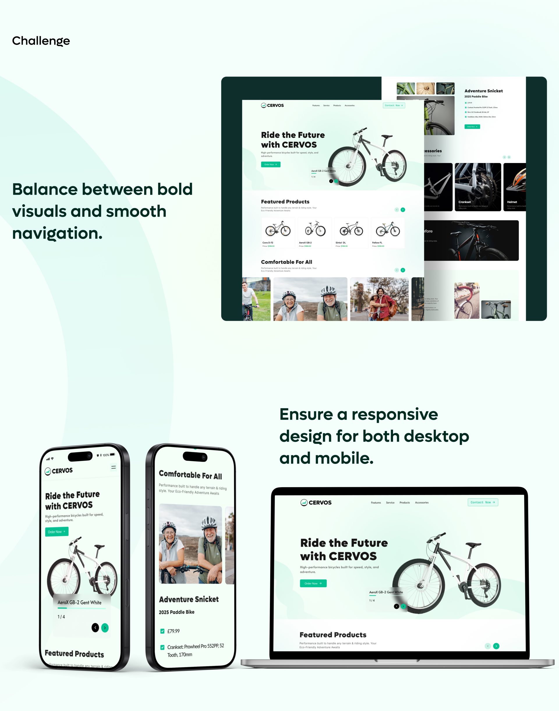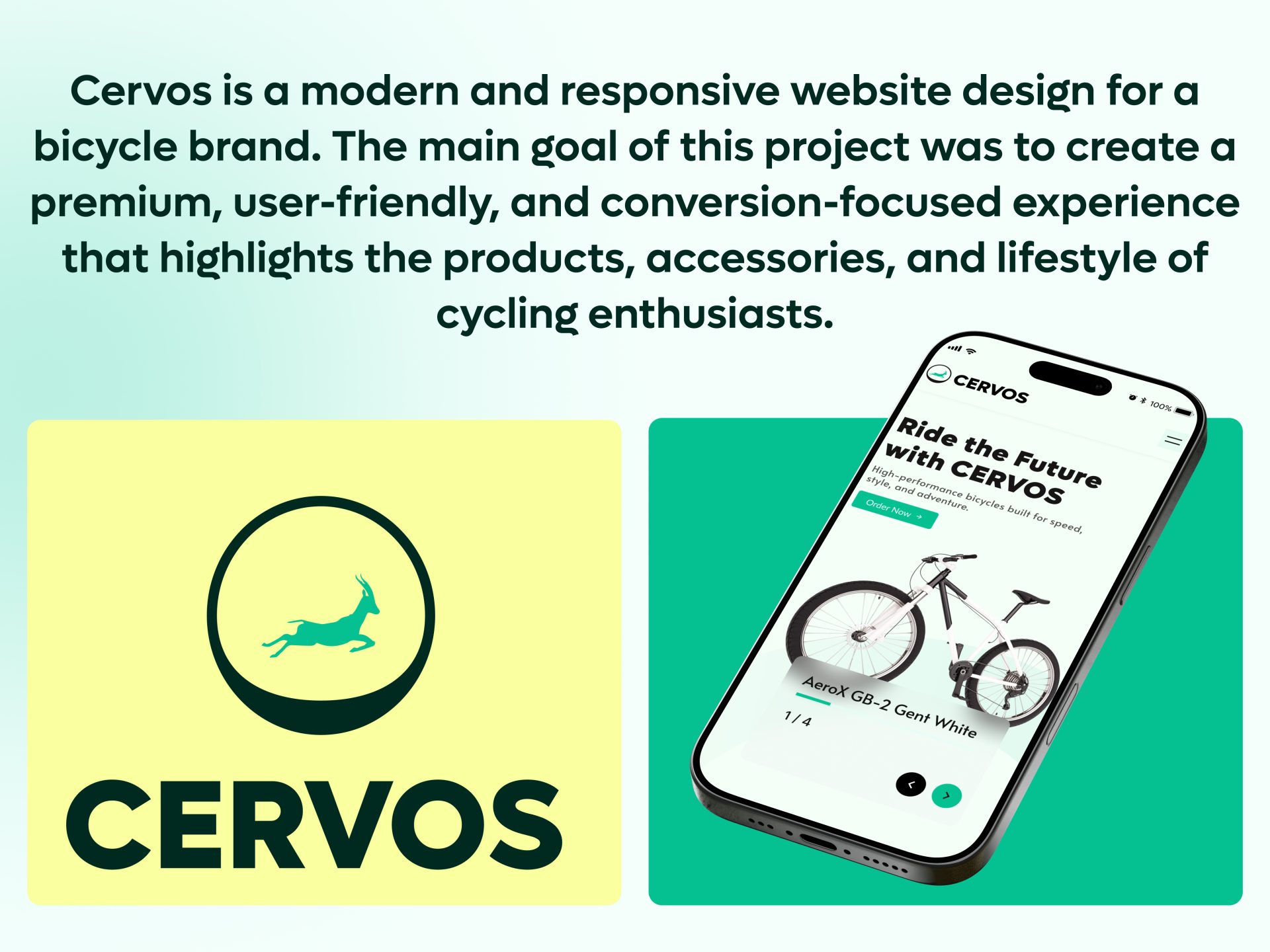 Cervos is a sleek, responsive website crafted for a bicycle brand, designed to deliver a premium, intuitive, and conversion-driven experience while showcasing products, accessories, and the lifestyle that inspires cycling enthusiasts.